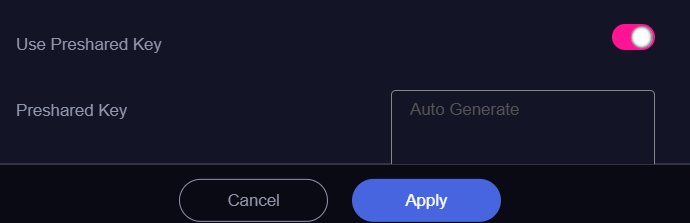 1. Select 'Use Preshared Key' and Click 'Apply'