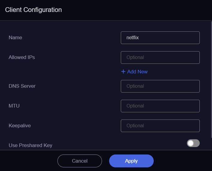 2. Follow these steps to Create a Wireguard VPN Client on Unit 2 [the site where you DID NOT activate Netflix]: